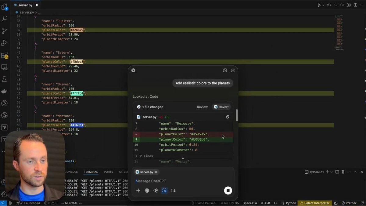 Big update! ChatGPT for macOS can now edit files directly—your top request since my first demo! And yes, it even writes code across multiple files and IDEs at once. Happy vibe coding!