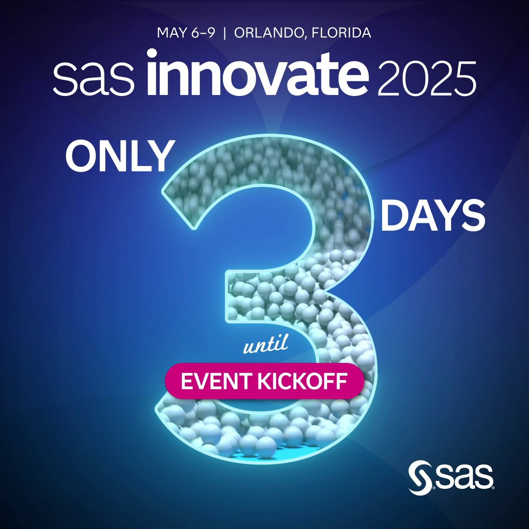 3 DAYS AWAY The event of the year is practically knocking — and we’re gearing up for big ideas, bold conversations & maybe a few surprises at #SASInnovate. Clear your schedule. It’s almost go time. Free digital pass if you won't be in-person: