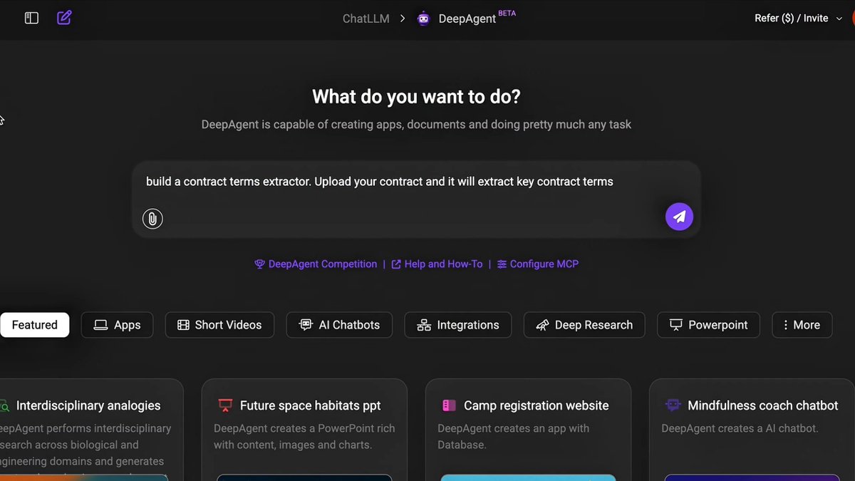 Create AI agents with DeepAgent! Here’s an example of DeepAgent creating a contract analyzer