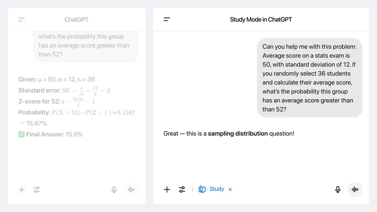 As ChatGPT becomes a go-to tool for students, we’re committed to ensuring it fosters deeper understanding and learning. Introducing study mode in ChatGPT — a learning experience that helps you work through problems step-by-step instead of just getting an answer.