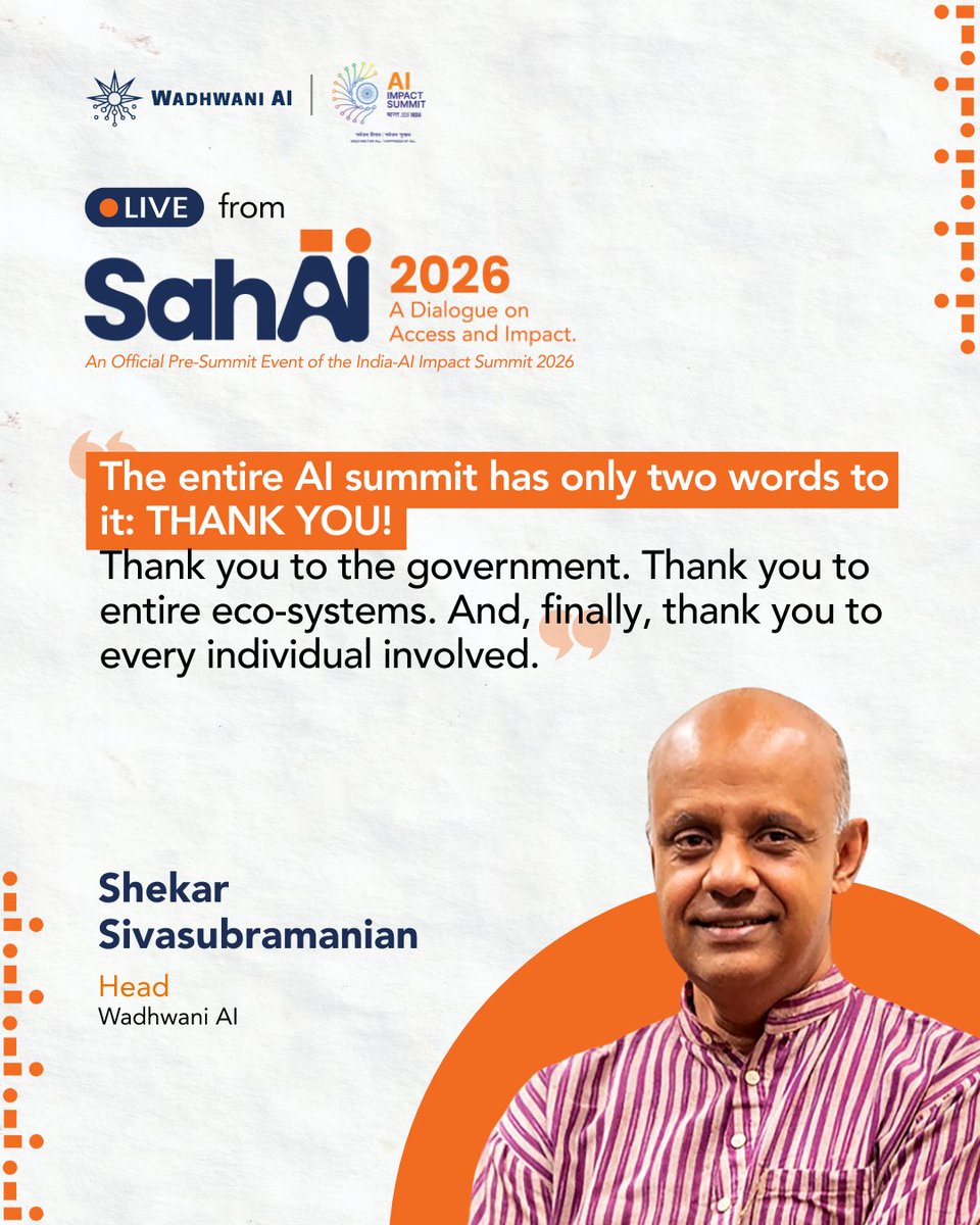 AI matters only when it reaches people. Wadhwani AI Head, Shekar Sivasubramanian outlines a people-first vision for AI, designed to scale across public systems and the last mile. #SahAI2026 #AIforImpact
