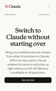 Anthropic absolutely nailed this. So many people will start using Claude. New feature lets you import your *entire* memory from ChatGPT, Gemini etc into Claude so it *instantly* knows everything about you. No more reminding Claude who you are. The best fucking part is it takes literally 60 seconds: – Copy and paste the below prompt into your alternative AI (e.g. ChatGPT) – Paste answer into Claude's "memory" settings and… you're done. – Claude immediately picks up from the last conversation you had with it in ChatGPT! The opportunity cost to switch to Anthropic just went to zero – their app is currently #1 in the app store — Greg (@GregFeingold) Ready to make the switch? claude.com/import-memory [Translated from EN to English]