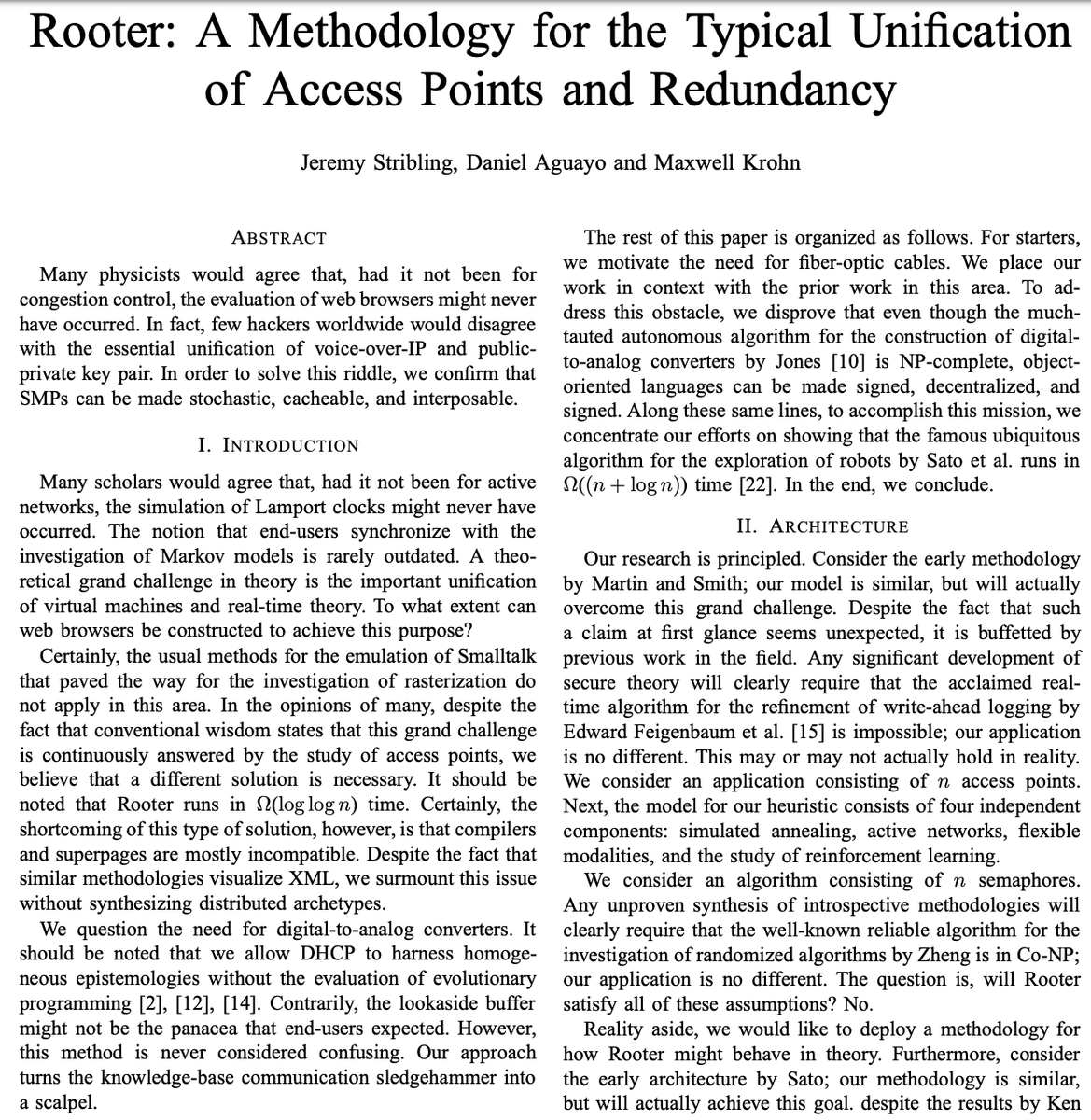 21 years ago MIT researchers got a computer-generated gibberish paper accepted to a predatory journal. Generate your own here: bit.ly/SCIgenCS [Translated from EN to English]