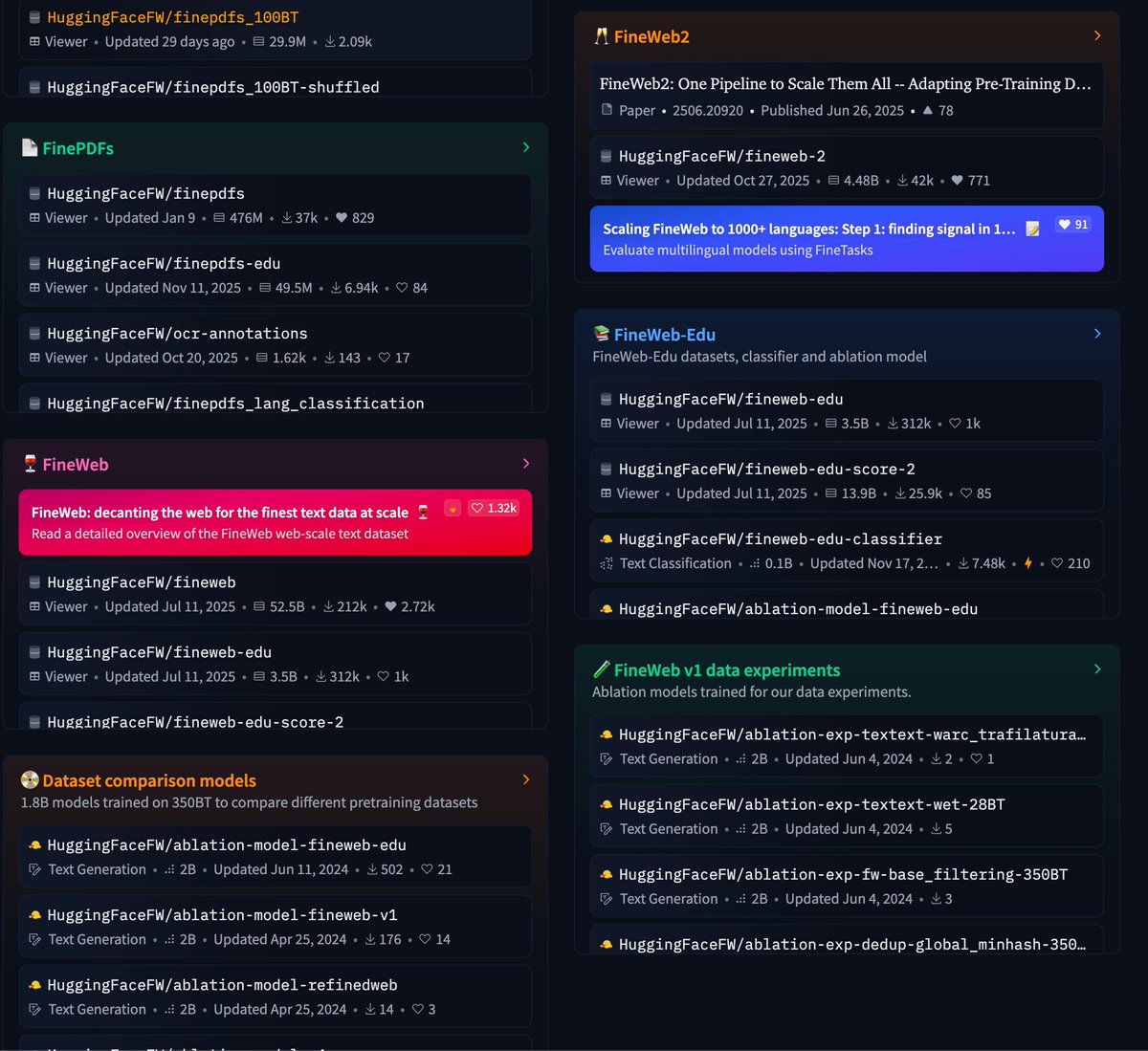 Oh shit, it seems like all the HF Research team pretraining data has been accidentally leaked to the public. The web, PDFs, and synthetic datasets are expode on hf FineData org… Apparently, an intern used CC to push the data with private=False.