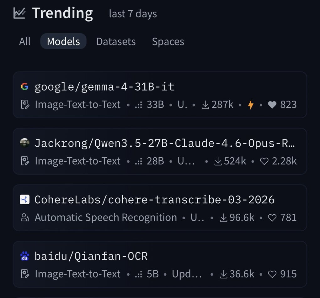 Gemma 4 is the #1 trending model on @huggingface 🤗