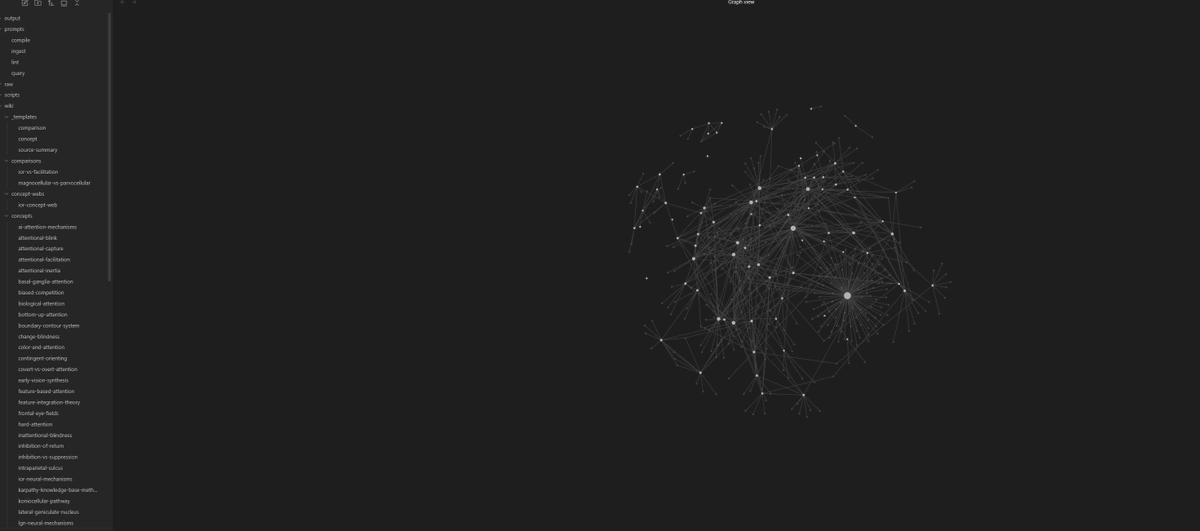 Implemented @karpathy 's obsidian idea and am now letting my agent build out a corpus around my neuroscience research. Obviously still needs vetting for informational accuracy, but certainly interesting to see the web grow! All using huggingface.co/DJLougen/Harm… with @NousResearch Hermes, ~35 t/s on my 3090.