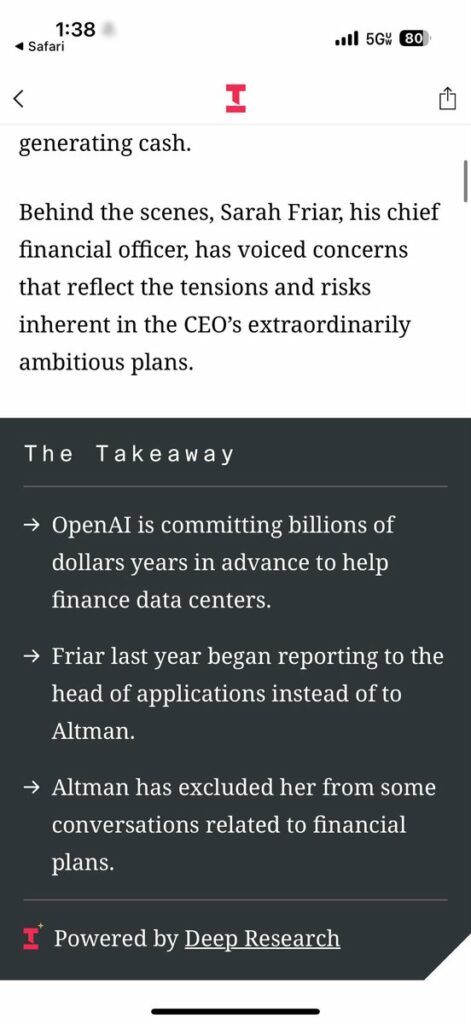 when OpenAI’s CFO starts whispering that she doesn’t buy the CEO’s plan, the shit may be about to hit the fan. Anissa Gardizy (@anissagardizy8) NEW: There’s a growing tension between San Altman and his CFO, Sarah Friar. Privately, Friar has started speaking about her concerns about the firm’s massive spending on compute and Altman’s hopes to IPO this year. More details from me and @amir in @theinformation — https://nitter.net/anissagardizy8/status/2040894109817393240#m