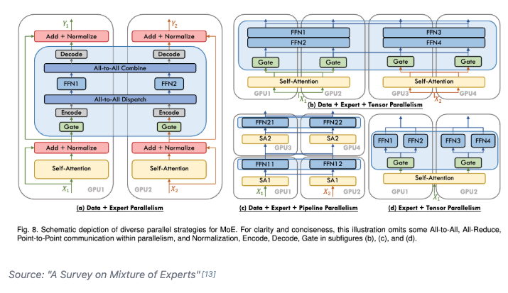 Day 93/365 of GPU Programming Studying parallelism today and stumbled upon this incredible blog post/book The Ultra-Scale Playbook: Training LLMs on GPU Clusters by Hugging Face that dives deep into data parallelism, expert parallelism, tensor parallelism, pipeline parallelism and context parallelism. I've read a bit about each of these methodologies before but this is the best resource I've found that really pieces them all together into a unified coherent picture. Kinda like its name implies, the team goes into actual empirical examples based on the 4000 scaling experiments (across up to 512 GPUs!) they conducted. E.g. how does tensor parallelism reduce activation memory for matmuls but still require gathering full activations for LayerNorm? When does pipeline parallelism's bubble overhead outweigh its memory savings? When and why would you combine TP/PP/DP on a specific cluster topology? What's the real memory breakdown between params, gradients, optimizer states and activations and which parallelism strategy targets which? et cetera Also loved all the beautiful and sometimes interactive diagrams that reminded me of distill.pub (which makes sense given they used distill's template to create the post). I wish more blog posts in ML would use a similar approach to help visual learners understand the content at an intuitive level. Especially now that rich visualizations/animations are so easy to spin up with LLMs. Really wonderful work by @Nouamanetazi @FerdinandMom @xariusrke @mekkcyber @lvwerra @Thom_Wolf. In times when things are going more and more closed source in, this is such a good example of what great open source AI education and research can look like. levi (@levidiamode) Day 92/365 of GPU Programming Taking a closer look at disaggregated LLM inference today, which I've been wanting to survey more after listening to the Dean <> Daly discussion at GTC. The best resource I found on the topic was this great talk by @Junda_Chen_ on the past, present and future of prefill decode disaggregation. In the lecture, Junda goes through Nvidia's dynamo, the intrinsic tradeoff spectrum between throughput & latency, TTFT, TPOT, the "goodput" metric, distinct characteristics between prefill vs decode, chunking P&D, the problem of interference, pipeline parallelism, resource & parallelism coupling, disaggregation and DistServe. — https://nitter.net/levidiamode/status/2040938107604742640#m
