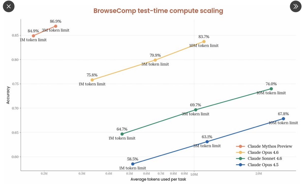 Claude Mythos is not only a big leap in performance, it's also about 5x token efficient in BrowseComp. I don't know what Anthropic is doing. But they manage to surprise me every single time. The IPO is getting closer. They have an ARR OpenAI outrun with $30 billion in revenue. OpenAI is under pressure. The next release has to be a huge hit because the market is evaluating the future. The pressure couldn't be greater. OpenAI has to prove its own "Mythos."
