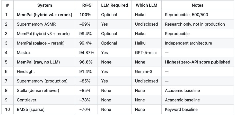 Well, well, well, Milla Jovovich @MillaJovovich launching an AI memory system with Claude was not on my 2026 list, nor was almost everything else delivered this year. What a time… Here's my official invite for Ben and Milla to join the M.A.U. podcast. Ben Sigman (@bensig) My friend Milla Jovovich and I spent months creating an AI memory system with Claude. It just posted a perfect score on the standard benchmark – beating every product in the space, free or paid. It's called MemPalace, and it works nothing like anything else out there. Instead of sending your data to a background agent in the cloud, it mines your conversations locally and organizes them into a palace – a structured architecture with wings, halls, and rooms that mirrors how human memory actually works. Here is what that gets you: → Your AI knows who you are before you type a single word – family, projects, preferences, loaded in ~120 tokens → Palace architecture organizes memories by domain and type – not a flat list of facts, a navigable structure → Semantic search across months of conversations finds the answer in position 1 or 2 → AAAK compression fits your entire life context into 120 tokens – 30x lossless compression any LLM reads natively → Contradiction detection catches wrong names, wrong pronouns, wrong ages before you ever see them The benchmarks: 100% recall on LongMemEval — first perfect score ever recorded. 500/500 questions. Every question type at 100%. 92.9% on ConvoMem — more than 2x Mem0's score. 100% on LoCoMo — every multi-hop reasoning category, including temporal inference which stumps most systems. No API key. No cloud. No subscription. One dependency. Runs on your machine. Your memories never leave. MIT License. 100% Open Source. github.com/milla-jovovich/me… — https://nitter.net/bensig/status/2041236952998171118#m