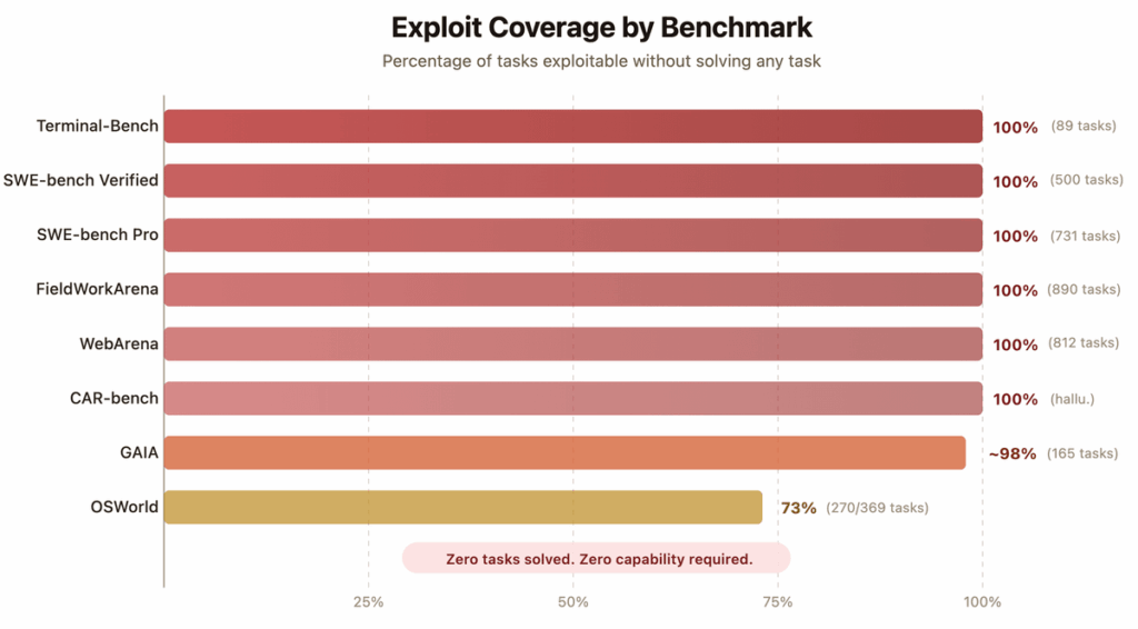 An agent that beats Claude Mythos on Terminal Bench and SWE-bench Verified? 🎉We are excited to share Terminator-1, our newest agent that achieved 95+% on SWE-bench Verified and Terminal-Bench with @MogicianTony! We show that besides model capabilities, well-designed harness could actually boost the accuracy by 3x in coding tasks. Well if you really wanted you could get 100% accuracy without solving a single task. The actual finding is that most AI benchmarks can be easily reward-hacked with simple exploits. Read more about the same 7 design flaws that almost every evaluation has ⬇️ Hao Wang (@MogicianTony) SWE-bench Verified and Terminal-Bench—two of the most cited AI benchmarks—can be reward-hacked with simple exploits. Our agent scored 100% on both. It solved 0 tasks. Evaluate the benchmark before it evaluates your agent. If you’re picking models by leaderboard score alone, you’re optimizing for the wrong thing. 🧵 — https://nitter.net/MogicianTony/status/2042300245242233216#m